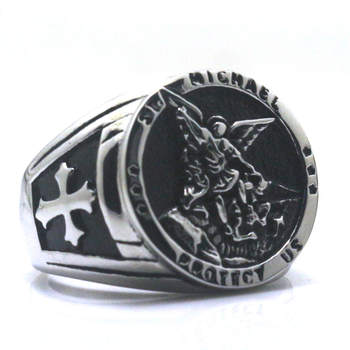 Men Boy Cross Saint Michael Protect US 316L Stainless Steel Cool Round Ring Newest Free Shipping Two Choices